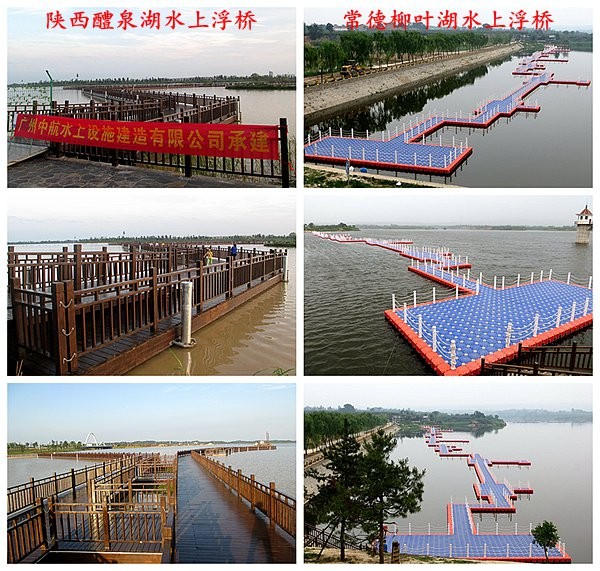 廣州中航水上浮橋經(jīng)典案例如湖南常德柳葉湖的景觀浮橋、陜西醴泉湖水上浮橋等堪稱水上景觀浮橋的典范。