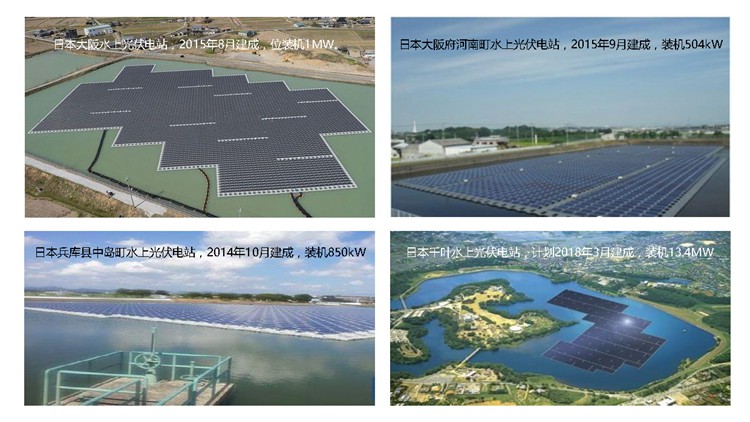 早在2011年美國(guó)《科學(xué)日?qǐng)?bào)》就有了關(guān)于漂浮式水上光伏電站的報(bào)道,這項(xiàng)技術(shù)在國(guó)外的發(fā)展要較國(guó)內(nèi)早,已經(jīng)有了一些成功案例,國(guó)內(nèi)目前處于剛起步階段,但呈蓬勃發(fā)展的趨勢(shì)。日本是目前世界上水上漂浮式光伏電站實(shí)際應(yīng)用最多的國(guó)家,根據(jù)統(tǒng)計(jì)2014年已有3.824MW并網(wǎng),2015年18.824MWp并網(wǎng),另還有2016年15MW年初并網(wǎng)。