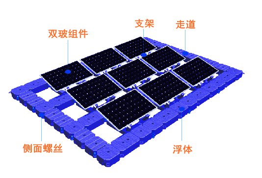 漂浮式水上光伏發(fā)電系統(tǒng)是指在水塘、小型湖泊、水庫(kù)、蓄水池等水上建立漂浮式光伏電站,以解決傳統(tǒng)光伏發(fā)電占地面積大的問題。將光伏發(fā)電組件固定在浮體上。浮筒、浮箱由高密度聚乙烯制成。專業(yè)的結(jié)構(gòu)設(shè)計(jì)在確保系統(tǒng)強(qiáng)度前提下,優(yōu)化浮體結(jié)構(gòu),簡(jiǎn)便的拼接設(shè)計(jì),有效地提高了工程安裝的時(shí)效,大大降低了安裝成本。